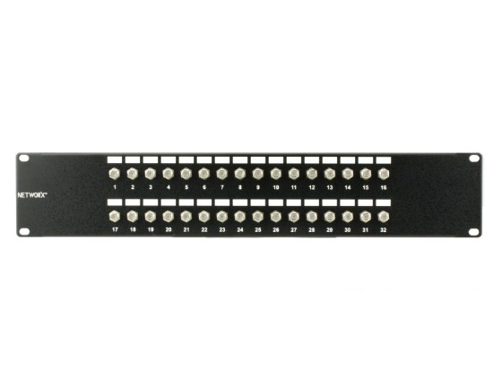 Coaxial Patch Panels are great for setting up a video distribution network. Often used in Resturants and similar establishments, coaxial patch panels will allow you to distribute multiple video signals from their source to the select output device. Made from powder coated steel this Networx® Coaxial Patch Panel will ensure your video signals are running to their full potential. Labels above each port will make sure you able to quickly identify which port requires your attention. All Networx® Coaxial Patch Panels come Fully Loaded and ready to be mounted in your distribution cabinet. The Networx® 32 Port Fully Loaded F-Type Coaxial Patch Panel is a great solution when setting up any type of coaxial distsribution network.