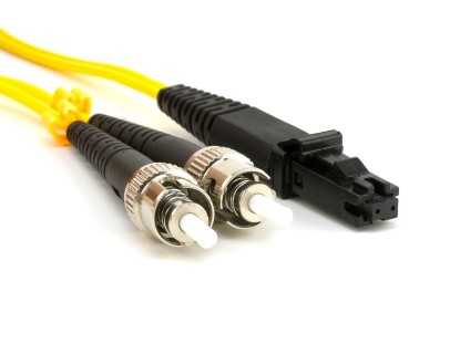 This 1m Singlemode Duplex Fiber Optic Patch Cable (9/125) - MTRJ to ST is built with genuine Corning Glass, has ceramic ferrules and a 9/125 micron core, this cable is suitable for high speed, high bandwidth, far-reaching telecommunications such that you would find in long-distance telephony and cable tele